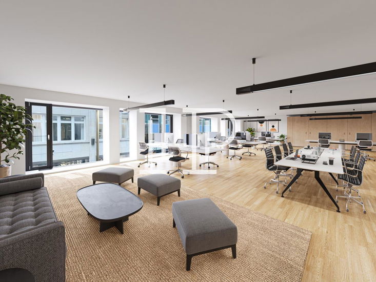 Die Architektur des Gebäudes ist klassisch modern gehalten. Schwarze und weiße Elemente verleihen der Fassade Eleganz. Die großen bodentiefen Fenster sorgen für viel Tageslicht in den Räumlichkeiten und erzeugen ein freundliches Ambiente. Einige der Büros bieten Ausblick auf den Alsterfleet. Sie können Ihr zukünftiges Büro nach Ihren Wünschen gestalten und ausbauen.
