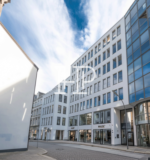 Moderne Büroflächen im ABC Cube nahe Gänsemarkt: helle Fassade, zentrale Lage mit sehr guter Anbindung nahe Binnenalster, Restaurants und Shops.