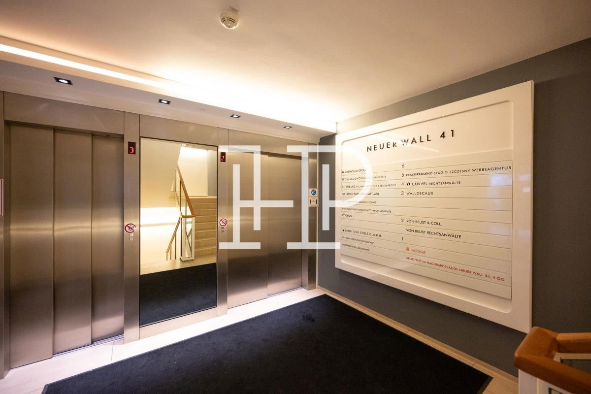 Der Gebäudekomplex am Neuen Wall liegt an einer der wichtigsten und eindrucksvollsten Geschäftsstraßen direkt im Herzen Hamburgs. Umgeben von zahlreichen renommierten Boutiquen und Läden wie z.B. Louis Vuitton oder Moncler überzeugt die Lage durch ein vielfältiges Angebot. Die Alster ist fußläufig in nur wenigen Minuten erreichbar. Zudem bieten naheliegende Parkhäuser wie z.B. Contipark Stellplätze rund um den Neuen Wall. U- und S-Bahnverbindungen, wie der Jungfernstieg sorgen für eine zügige Anbindung an den ÖPNV.