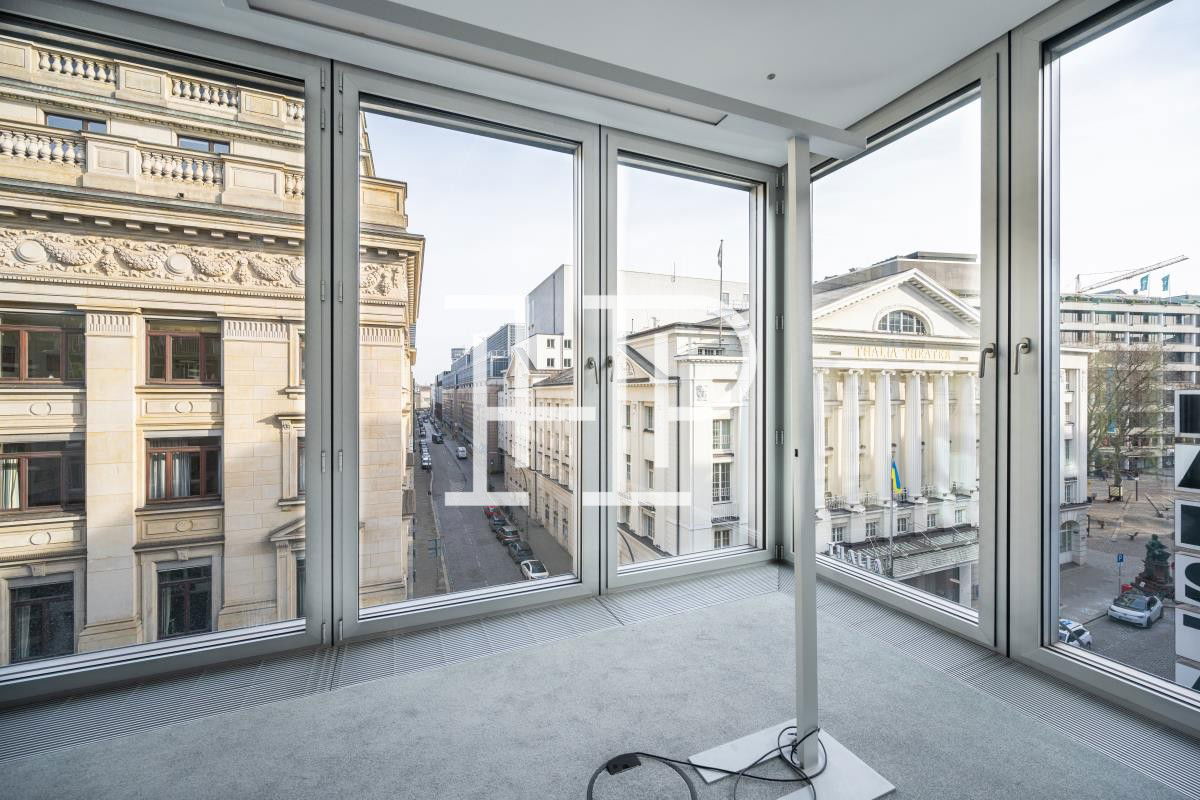 Das Eckgebäude wurde 2009 erbaut und überzeugt durch seine moderne sowie klassische Fassade. Über einen repräsentativen Eingangsbereich gelangen Besucher und Gäste mit dem Aufzug in die jeweiligen Geschosswerke. Die bodentiefen Fenster sorgen für helle Räumlichkeiten und eine positive Arbeitsatmosphäre. Weiterhin ermöglichen die Balkon- und Terrassenflächen das Entspannen an der frischen Luft. Das Gebäude verfügt über eine hauseigene Tiefgarage, in der sich TG-Stellplätze für 220EUR/St. mtl. anmieten lassen.