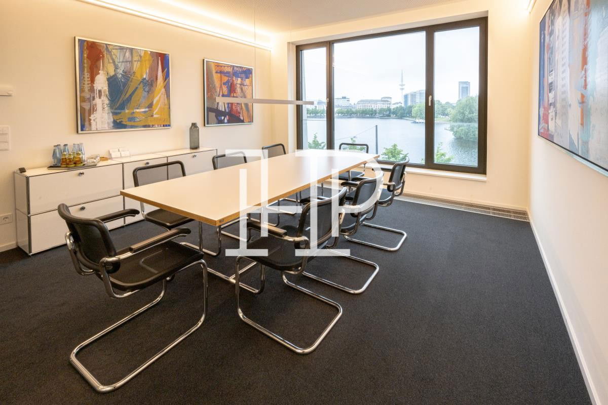 Das Gebäude überzeugt durch seine edle Natursteinfassade mit großflächigen Fensterelementen. Die angebotene Bürofläche befindet sich im 8. OG des Gebäudes Ballin III. Die modernen Räumlichkeiten verfügen über eine effiziente Raumaufteilung und ermöglichen stilvolles Arbeiten. Das Highlight der Bürofläche ist der unverwechselbare Ausblick auf die Hamburger Binnenalster. Auf Wunsch kann die angebotene Mietfläche möbliert mit USM-/Vitra-Möbeln übernommen werden. Jedes Büro verfügt über Bodentanks.