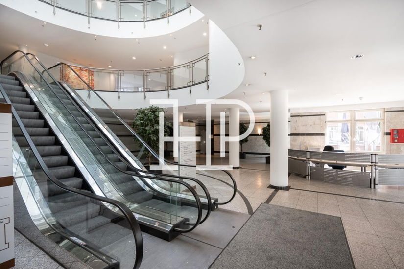 Das im Jahre 1994 erbaute Gebäudeensemble bietet Büro- und Gewerbeflächen auf bis zu fünf bzw. sechs Ebenen, verteilt auf vier Gebäudeabschnitte. Über den mit Marmor verzierten Eingangsbereich gelangt man mit den Personenaufzügen in die jeweiligen Büroetagen. Aufgrund der Gebäudekubatur verfügt das Objekt über sehr effiziente Mietflächen, die auf Wunsch unterteilt werden können. In der hauseigenen Tiefgarage gibt es zudem die Möglichkeit PKW-Stellplätze langfristig anzumieten.