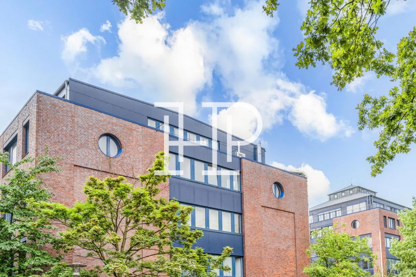 Der Bürokomplex im Eimsbütteler Businesspark wurde in den 1990er-Jahren im Stil der Postmoderne errichtet und bietet gepflegte, funktionale Büroflächen in zentraler Lage im Hamburger Westen. Klassische Baukörper mit markanten blauen Fensterelementen und auffälligen Tonnen- bzw. Glasdächern prägen das Erscheinungsbild. Über den repräsentativen Eingangsbereich gelangen Mitarbeiter und Besucher per Personenaufzug in alle Etagen. Große Fensterfronten schaffen helle, freundliche Arbeitsräume mit angenehmem Raumklima – ideal für modernes Arbeiten.