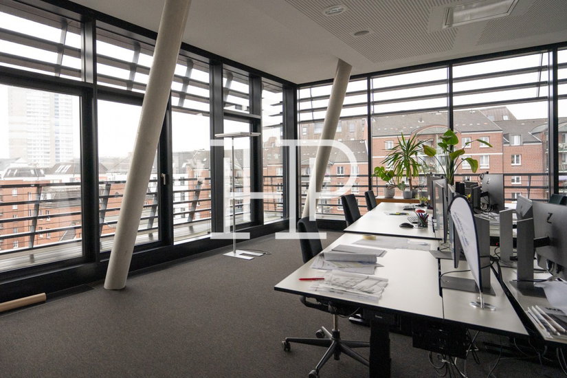 Moderne Büroflächen in Hamburg-Altona: Elbblick, Architektur von Hadi Teherani, lichtdurchflutet und provisionsfrei mit sehr guter Anbindung.