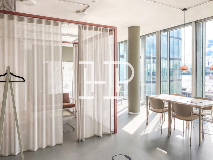 Direkt an der Elbe gelegen befindet sich das 2020 umfassend sanierte Gebäude. Die transparente gläserne Fassade sorgt für ein mit Licht erfülltes Gebäude. Die bodentiefen Fensterfronten bieten einen einzigartigen Ausblick auf das Wasser. Die stilvoll gestalteten Räumlichkeiten verfügen zudem über einen hohen technischen Standard und können in Abstimmung mit dem zukünftigen Mieter ausgebaut werden. Das Erdgeschoss zeichnet sich durch seine große, zur Elbe ausgerichtete, Terrasse aus.