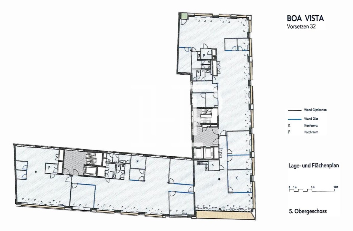 Das Büro- und Geschäftsgebäude präsentiert sich von außen mit einer modernen Fassade, die sich hervorragend an die nähere Umgebung anpasst. Mitarbeiter und Besucher des Hauses gelangen bequem über den Eingangsbereich mit einem der Personenaufzüge in die jeweilige Büroetage. Die Mietflächen und die Gemeinschaftsflächen des Hauses befinden sich in einem sehr gepflegten und neuwertigen Zustand. Innerhalb der Mietfläche ist eine offene Raumstruktur oder auch eine Zellenstruktur, nach Absprache mit dem Vermieter, abbildbar. Das Highlight der Mietfläche ist eine gemeinschaftlich nutzbare Dachterrasse, die einen einzigartigen Blick auf die Elbphilharmonie ermöglicht.