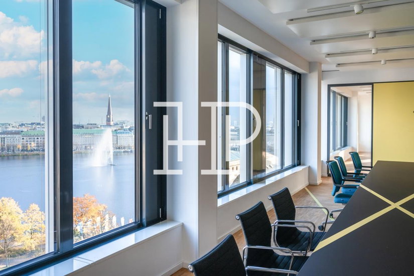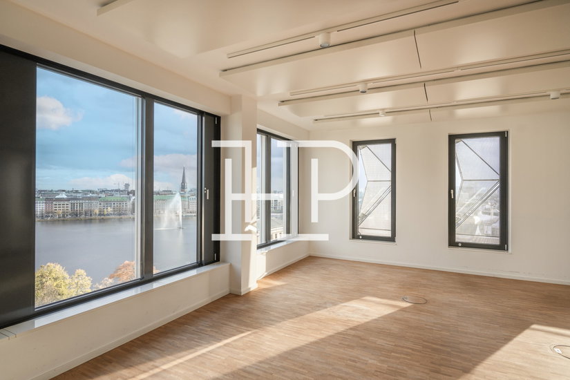 Büroflächen im Esplace in der Hamburger Innenstadt: modernes Hochhaus mit Glasfaser, flexiblen Grundrissen und Nähe zur Binnenalster.