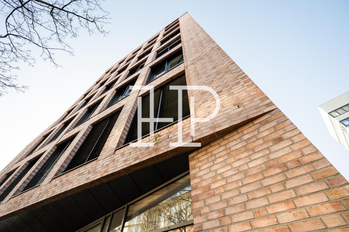 Der Fleetinselkontor überzeugt durch eine moderne Rotklinkerfassade, die mit schwarzen, edlen Fensterrahmen akzentuiert ist und sich vom Erdgeschoss bis zum sechsten Obergeschoss harmonisch fortsetzt. Mitarbeiter und Besucher gelangen barrierefrei über einen großzügig gestalteten Eingangsbereich mit einer besonderen Deckenbeleuchtung zu den Aufzügen und den Büroetagen. Für sonnige Tage steht ein außenliegender, elektrisch steuerbarer Sonnenschutz zur Verfügung, der individuell bedient werden kann. Die effizienten Grundrisse ermöglichen eine flexible Flächenaufteilung – von Einzel- und Doppelbüros bis hin zu offenen Raumkonzepten.