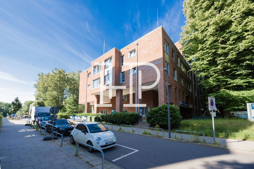 Das Gesundheitszentrum Eilbek ist ein modernes, mehrstöckiges Gebäude mit einer Backstein-Fassade und großen Fenstern, die viel Tageslicht in die Innenräume lassen. Im Erdgeschoss befinden sich die Empfangsbereiche und mehrere Wartezimmer, die durch ein ansprechendes, freundliches Design überzeugen. In den oberen Etagen sind die verschiedenen medizinischen Praxen und Therapieräume untergebracht, die alle barrierefrei zugänglich sind. Die Innenausstattung ist modern und funktional, mit klaren Linien und hochwertigen Materialien, die eine angenehme Atmosphäre schaffen.
