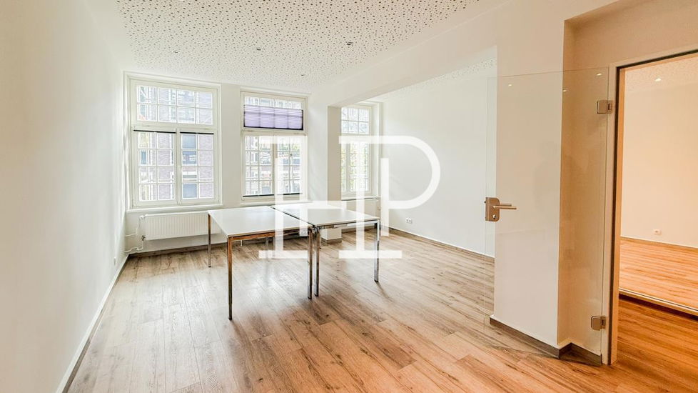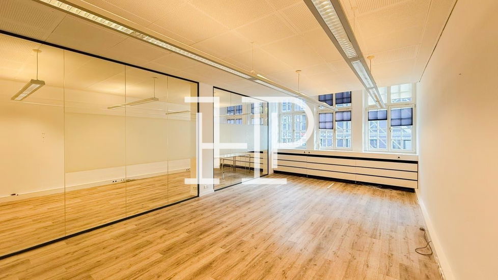 Das Gebäude ist eines der wenigen erhaltenen Kaufmannshäuser aus der Zeit vor dem Hamburger Feuersturm von 1943 und bietet damit nicht nur einen historischen Kontext, sondern auch eine einzigartige Atmosphäre. Insgesamt laden die ansprechende Gestaltung und der gepflegte Zustand des Gebäudes dazu ein, kreativ zu arbeiten und sich wohlzufühlen, was diese Büroflächen zu einem attraktiven Standort im Herzen Hamburgs macht. Die moderne Ausstattung umfasst Glaselemente und hochwertige Vinylböden, die eine elegante und funktionale Arbeitsumgebung schaffen.