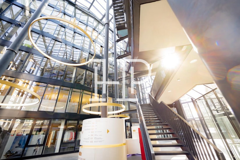 Das Hanse Forum bietet auf sieben Etagen mit rund 15.000 m² moderne Büroflächen in zentraler Lage. Entworfen vom Architekten Massimiliano Fuksas, überzeugt das Kontorhaus durch seine Glasfassade und zukunftsorientierte Architektur. Der großzügige Eingangsbereich erstreckt sich über alle Etagen und eröffnet einen freien Blick zum Himmel. Mehrere Aufzüge und freistehende Brücken verbinden die Ebenen. Die Büroflächen zeichnen sich durch flexible Raumaufteilungen, individuelle Ausbaumöglichkeiten sowie die Option zur Anmietung mehrerer Etagen aus.
