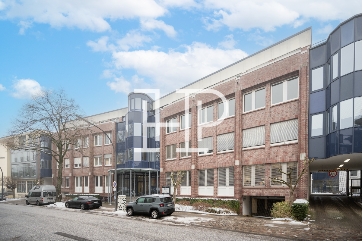 Das Büroobjekt HHJW 35 präsentiert sich von außen mit einer schlichten Fassade. Der gläserne Eingangsbereich ermöglicht einen bequemen Zugang zum Objekt. Die zur Vermietung stehende Bürofläche überzeug durch ihre flexible Raumaufteilung, welche individuell nach den Wünschen des Mieters angepasst werden kann. Die Arbeitsplatzbeleuchtung erfolgt mittels Deckenleuchten. Weiterhin besteht die Möglichkeit, PKW-Stellplätze zusätzlich anzumieten. Dies ist besonders praktisch für Mitarbeiter und Kunden, die mit dem Auto anreisen.