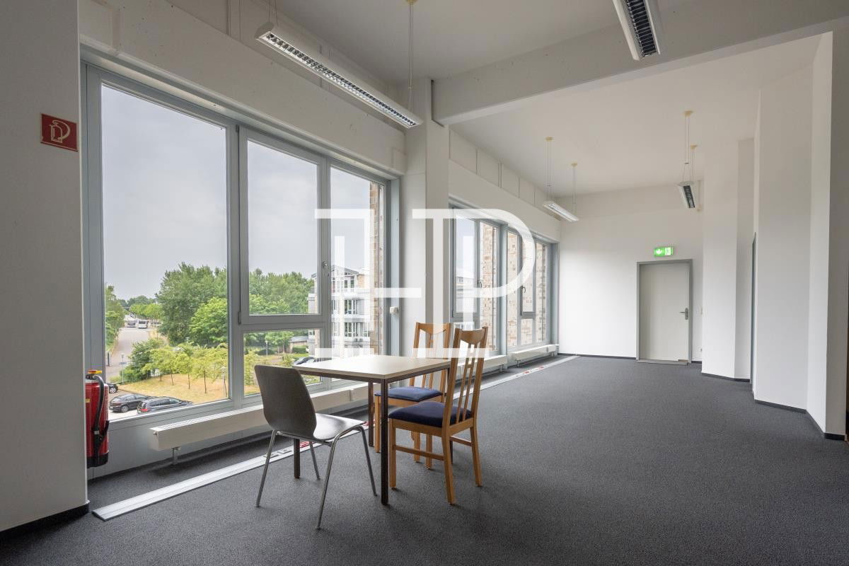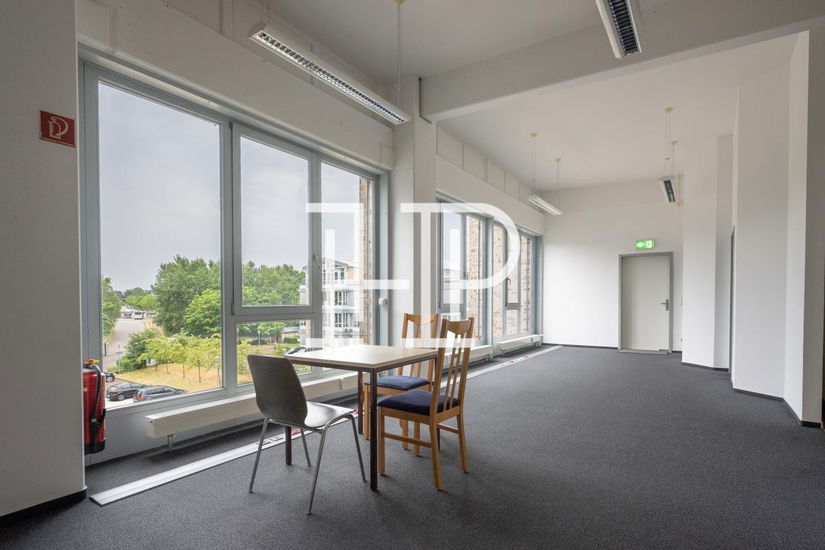 Der Bürokomplex verfügt über eine Gesamtmietfläche von ca. 8.800 m² und überzeugt mit einer schlichten und modernen Fassade. Bodentiefe Fensterelemente sorgen für viel natürliches Licht am Arbeitsplatz und somit für eine angenehme Arbeitsumgebung. Die Mietflächen verfügen über eine 1-Bund-Bürostruktur und lassen sich hinsichtlich der Raumaufteilung flexibel verändern. Zusätzlich zur Mietfläche können direkt vor dem Objekt weitere PKW-Außenstellplätze angemietet werden.