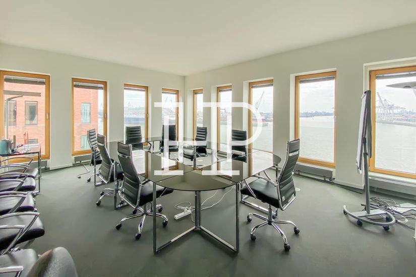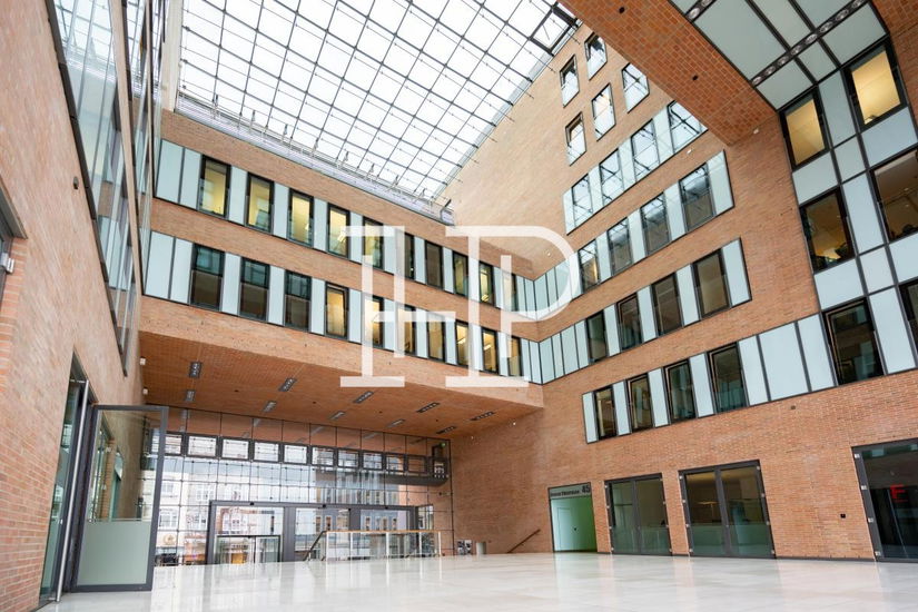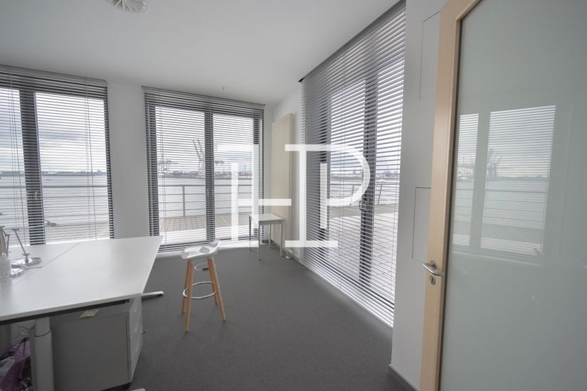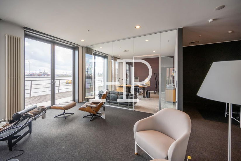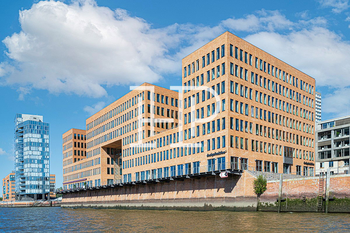 Moderne Büroflächen in der Großen Elbstraße: hanseatischer Backstein, gläserner Eingangsbereich und repräsentative Büros mit direktem Elbblick.