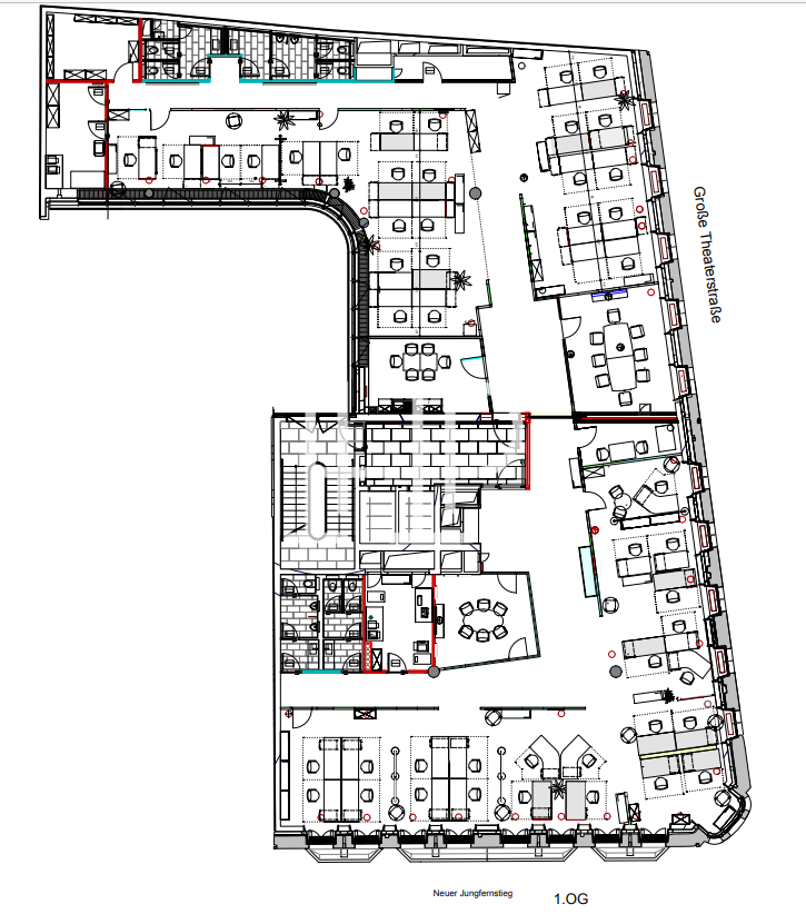 Das Haus Abendroth befindet sich direkt an der Hamburger Binnenalster. Bekannte Einkaufsstraßen wie der Jungfernstieg oder der Neue Wall sind in nur wenigen Gehminuten zu erreichen. Die Mittagspause kann in einem der zahlreichen Café's wie z.B. der Jahreszeiten Terrasse an dem Ufer der Alster verbracht werden. Durch seine City-Lage verfügt dieser Standort zudem über eine sehr gute Anbindung an das öffentliche Verkehrsnetz.