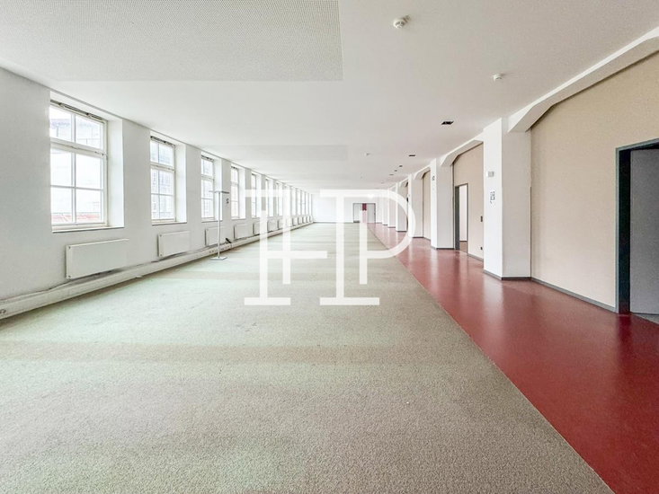 Das markante Bürogebäude überzeugt durch seine charakteristische Klinkerfassade und die eindrucksvoll gegliederte Fensterfront. Die mehrfach abgestuften Gebäudeabschlüsse verleihen dem Haus eine klassische, hanseatische Note und unterstreichen seinen repräsentativen Charakter. Über den großzügigen Eingangsbereich mit stilvollen roten Doppeltüren gelangt man in das Innere, das sich durch hohe Decken und ein helles, freundliches Ambiente auszeichnet.