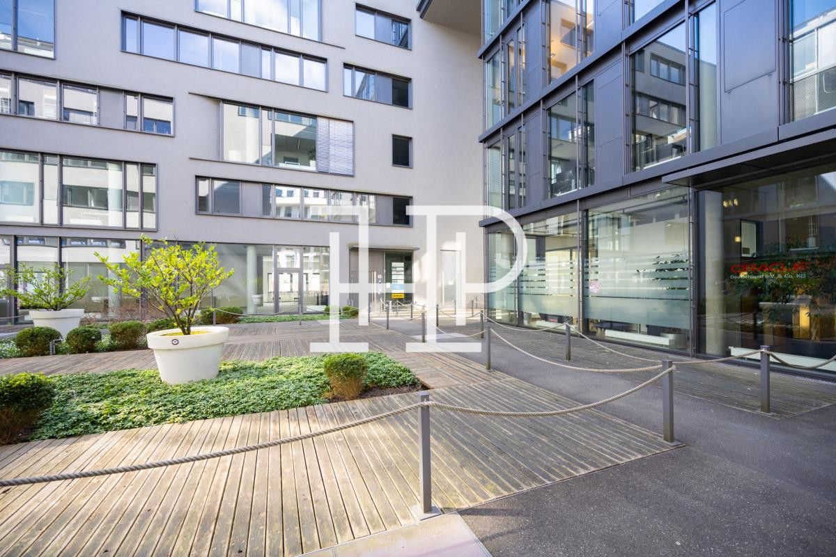 Das moderne Objekt überzeugt durch seine markante und schlichte Architektur. Es verfügt über große Fensterflächen die innerhalb der Räumlichkeiten für viel Licht sorgen. Die Büroflächen lassen sich flexibel nach Mieterwunsch gestalten. Hervorzuheben ist zudem der begrünte und ruhige Innenhof.