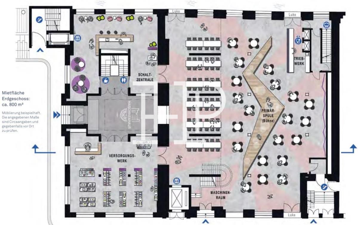 Büroflächen im Maschinenhaus der Speicherstadt: historische Industriearchitektur mit hohen Decken, großen Fenstern und einzigartigem Speicher-Charme.
