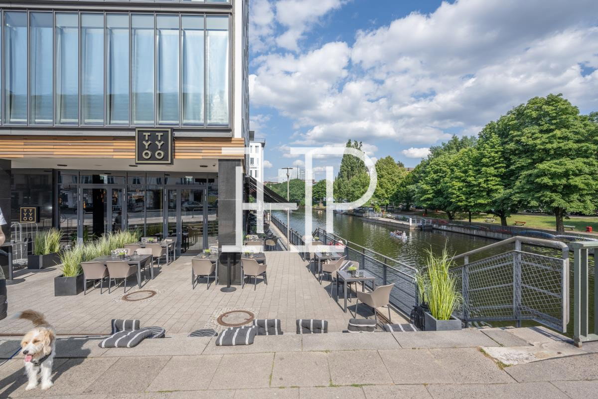 Büroflächen in Winterhude: modernes Ensemble mit Innenhof, Gastronomie, Tiefgarage und viel Tageslicht, teils mit Blick auf den Osterbekkanal.