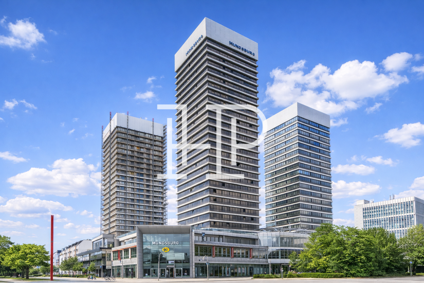 Das weitläufig erkennbare Gebäudeensemble verfügt über eine imposante Glasfassade, die bis ins 24 Obergeschoss reicht. Über den modernen und hellen Eingangsbereich gelangen Sie bequem mit den drei Hochgeschwindigkeitsaufzügen in die jeweilige Büroetage. Die Räumlichkeiten verfügen über eine hochwertige technische Ausstattung und sind durch die großen Fenster hell und lichterfüllt. In der hauseigenen Tiefgarage stehen zudem Stellplätze zur Verfügung.