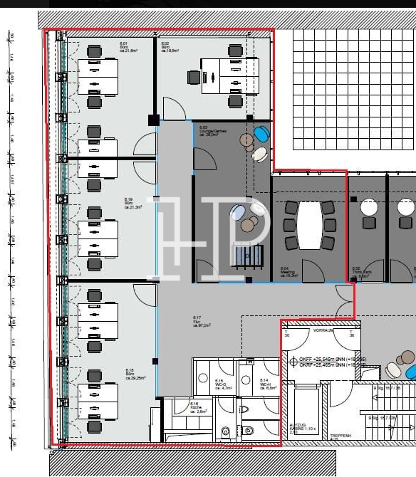 Das Bürogebäude stammt aus dem Jahre 1995 und wurde 2017 aufwendig renoviert und saniert. Der einladende Eingangsbereich ermöglicht einen idealen Empfang von Kunden und Geschäftspartnern. Die Räumlichkeiten lassen sich bequem mit einem Personenaufzug erreichen, sind komfortabel und weisen einem hochwertigen Ausbaustandard auf. Bodentiefe Fenster sorgen für eine natürliche Belichtung der Büroräume und eine angenehme Arbeitsatmosphäre. Eine große, offene Küche mit Sitzmöglichkeiten lädt zum Austausch mit den Kollegen ein und bietet einen Ort zum gemeinsamen Mittagsessen. Im 8. Obergeschoss befindet sich die großzügige Dachterrasse, welche einen einzigartigen Blick über Hamburgs Innenstadt bietet.