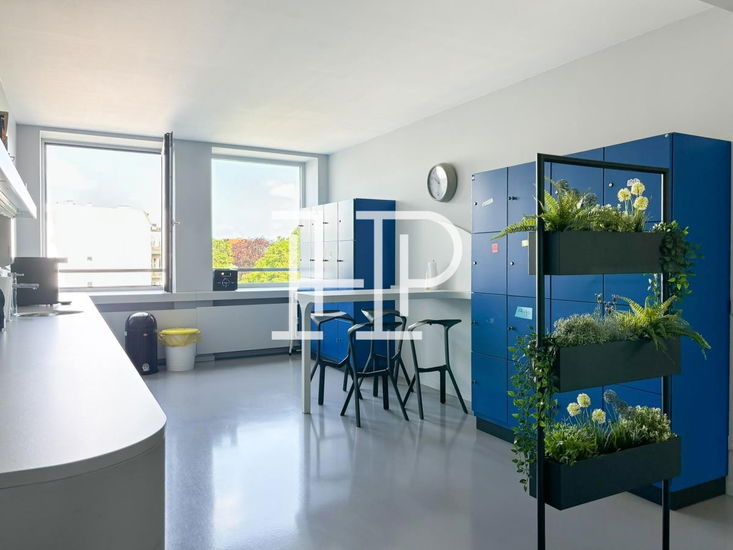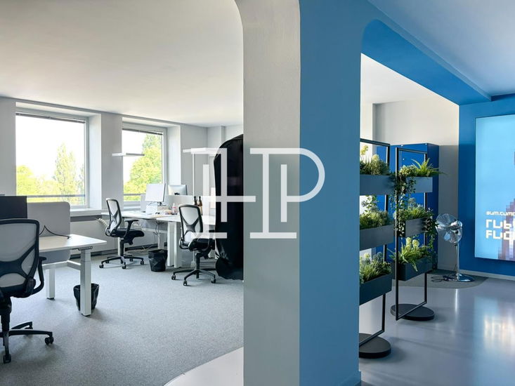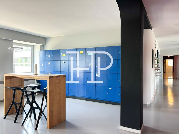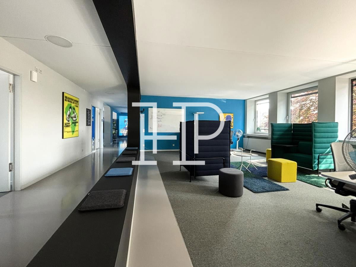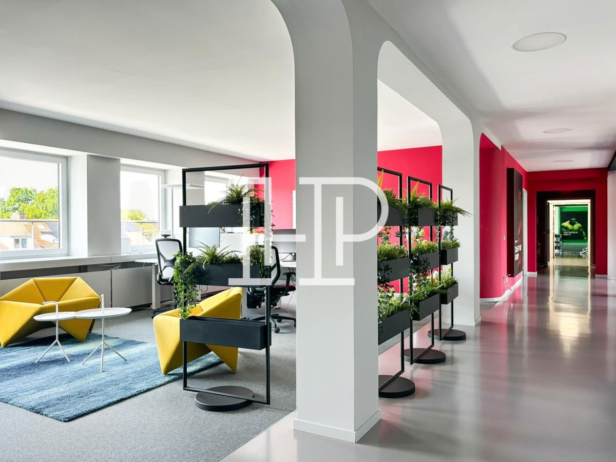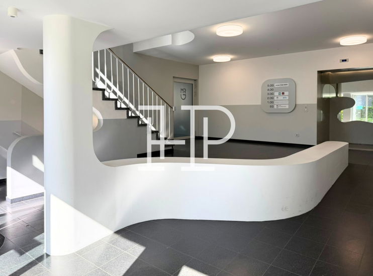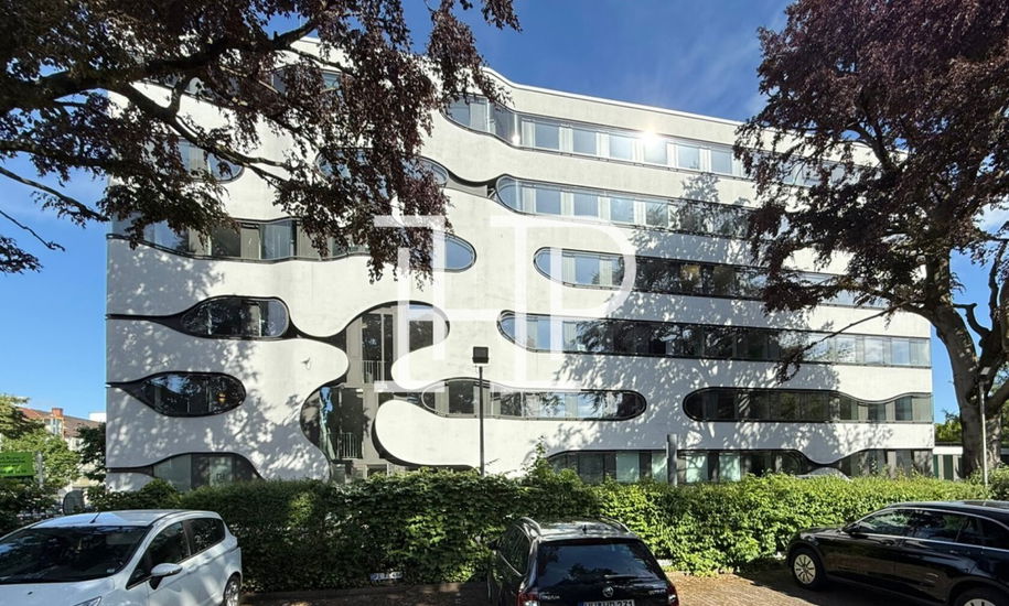 Das Gebäude wurde 2012 nach einem Entwurf des Architekten Jürgen Hermann Mayer entkernt, saniert und aufwendig umgebaut. Das gesamte Gebäudeensemble zeichnet sich durch seine eindrucksvoll geschwungene Fassade, die mit wellenartigen Glaselementen versehen ist. Über den repräsentativen Eingang erreichen Sie bequem mit dem Personenaufzug die jeweiligen Büroflächen. Weiterhin ist für den Büro- und Hauseingang eine Beschilderung vorgesehen, die nach Absprache mit dem Eigentümer gestaltbar ist. Die hochmodernen Büroflächen können, je nach Mieterwunsch, flexibel umgestaltet und ausgebaut werden und bieten, aufgrund der großzügigen Fensterelemente, helle und freundliche Räumlichkeiten.