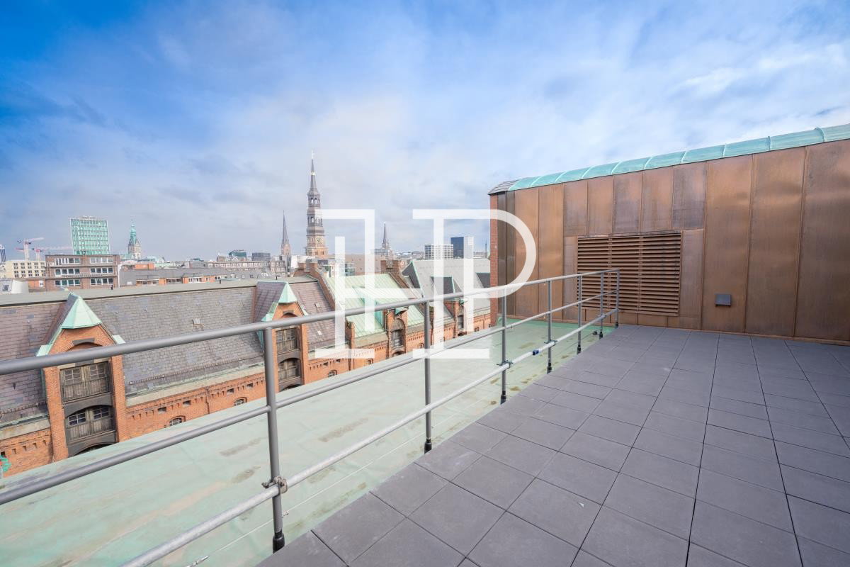 Coworkingflächen im Speicher M27 in der Speicherstadt: moderne Arbeitswelten, Konferenzräume und Dachterrassen mit Elbphilharmonie-Blick.
