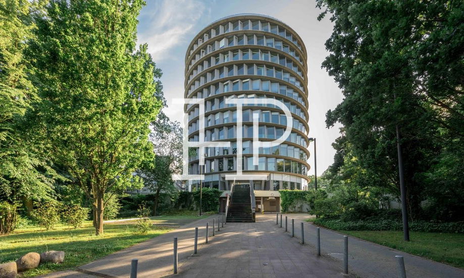 Das architektonisch markante Bürogebäude wurde vom renommierten Architekten Hadi Teherani entworfen und überzeugt durch seine charakteristische, runde Formensprache. Die hochwertige Glas-Stahl-Fassade verleiht dem Objekt einen hohen Wiedererkennungswert und eine repräsentative Außenwirkung. Erschlossen wird das Gebäude über eine von Bäumen gesäumte Zuwegung zu den barrierefreien Aufzügen. Im Inneren sorgen bodentiefe, umlaufende Fenster auf allen Ebenen für eine hervorragende Belichtung und helle, moderne Büroflächen mit angenehmer Arbeitsatmosphäre.