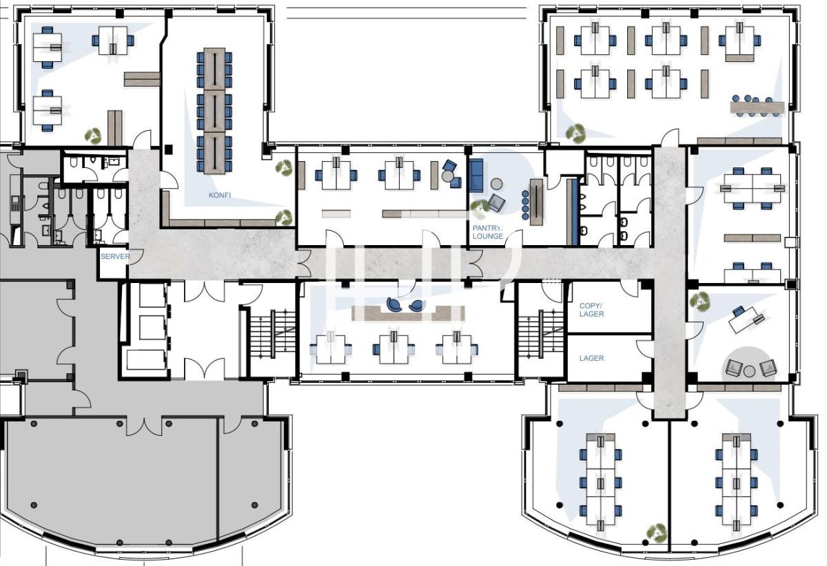 Das Objektensemble besticht durch eine moderne und futuristische Architektur mit einer Alu-Glas-Fassade. Über eine repräsentative, zweigeschossige Eingangslobby lassen sich die Büroflächen erreichen. Die hellen Büroflächen lassen sich, nach Absprache mit dem Vermieter, auf Mieterwunsch ausbauen und gestalten. Aufgrund der Gebäudekubatur ist eine flexible Raumaufteilung, wie z.B. die Unterbringung von Einzelbüros, Gruppenbüros und offenen Bereichen möglich.
